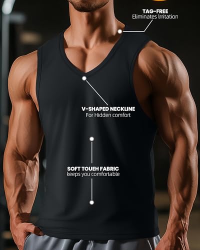 Ficerd 3 Pack Men's Big and Tall Workout Tank Tops, Cotton V Neck Sleeveless Gym Muscle T-Shirts Athletic Tee Summer Vest Top 7