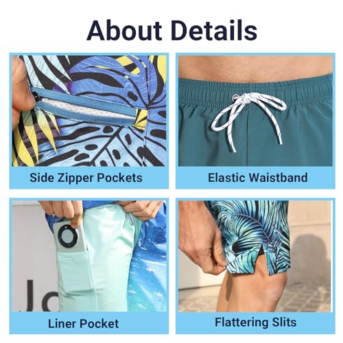 More information about Mens Swim Trunks with Compression Liner 9 Inch Swimming Trunks Board Shorts with Zipper Pockets