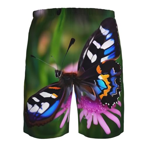 HOT ! Colorful Butterfly Print Men's Swim Trunks Beach Shorts Elastic Waist Drawstring Summer Swimming Board Shorts