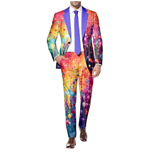 Mens 2 Piece Tuxedo Suit Set Rainbow Print Floral Party Dress Jacket Coat Slim Fit Button Blazer Pants with Pockets 1
