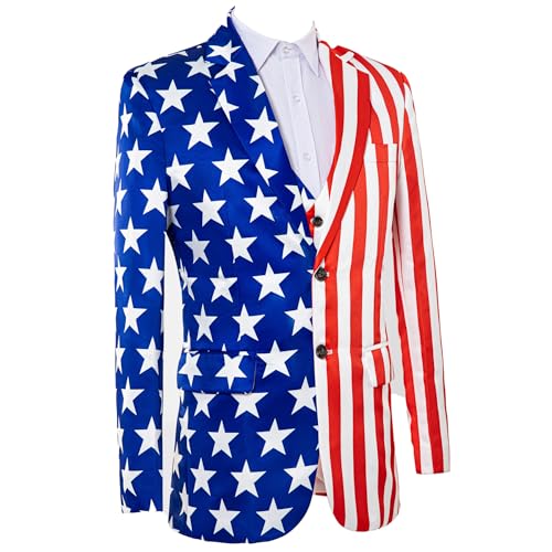 HOT ! HBDesign Men's 3 Piece Suit Set with American Flag Pattern Vest with 4 Buttons