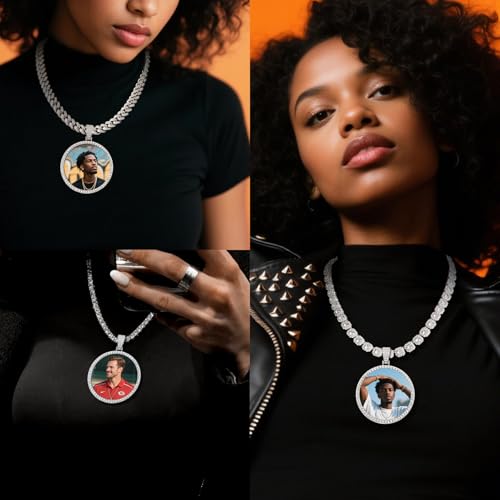 3UMeter Personalized Large Photo Necklace Custom Chain with Picture Pendant Necklace for Men Women Oversize Pendant Memorial Necklace with Picture Hip Hop Jewelry Personalized Gift 4