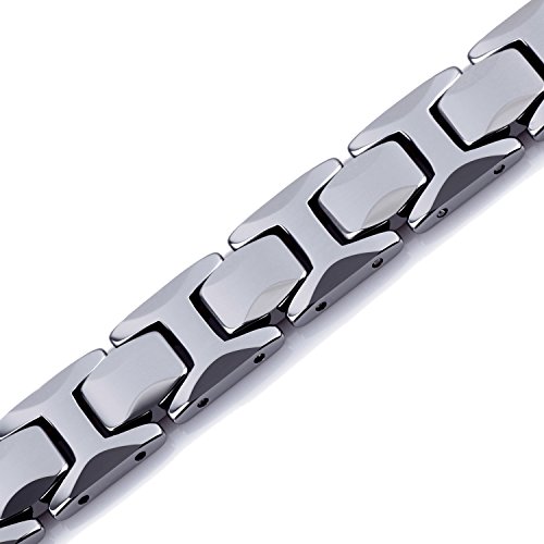 Urban Jewelry Stunning Solid Tungsten Link Bracelet for Men Polished Link, Puzzle, Ceramic Style (Silver, Black, 18K Gold Plated Option) 5