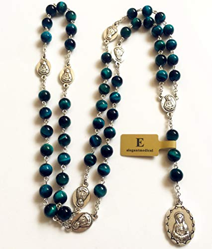 More information about elegantmedical HANDMADE RARE Peacock buleTiger Eye Jade Beads SEVEN 7 SORROWS MARY MEDAL Rosary Necklace Catholic GIFTS