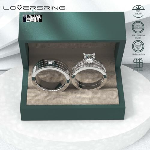 More information about Wedding Ring Sets His And Hers Promise Ring Wedding Ring Sets His And Hers Couples Women 925 Sterling Silver Moissanite Man Titanium Wedding Band