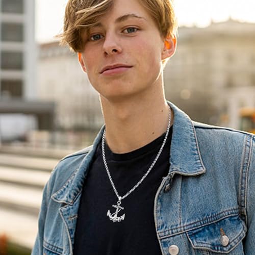 • ANCHOR JEWELRY GIFTS FOR MEN -- The necklace features the symbolism of anchor, haning from 22"+2" inches stainless steel rolo chain. perfect natical anchor jewelry gifts for adventurous and brave people who are always ready to discover new twists and turns, also as a graduation gifts for graduates who find the path in life and move in the right direction