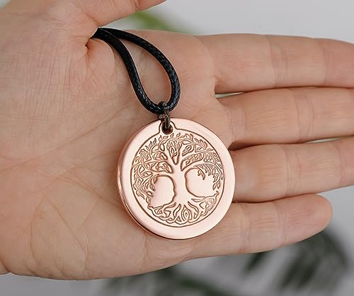 DEMMEX Tree of Life Pendant Necklace, 2.5mm Thick, 1.5 Inch Diameter, Unisex, Handmade in Turkey, Pure Copper - Polish with Sea Salt Lemon Mix 7