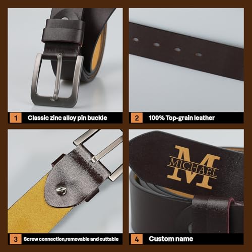 Father’s Day Gifts, Personalized Leather Belt for Men, Husband, BF, Custom Handcrafted Engraved Real Belt with Logo 5