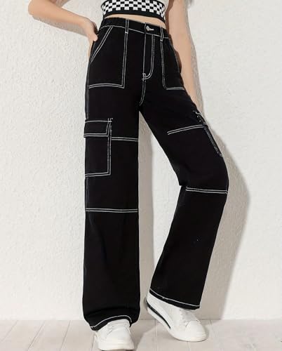 • Features: With the amazing white stitching design, our cute black jeans for teen girls make you stand out. Trendy jeans for juniors 2025 with high-rise elastic waistband and wide leg designs provide a loose fit. Junior straight leg jeans feature two front pockets, two side flap pockets, and two back flap pockets for storing daily items.