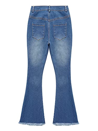 Girls Ripped Flare Jeans Elastic Waist Leggings Bell Bottom Pants Casual Destroyed Wide Leg Denim Trousers 6