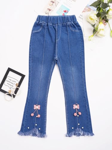 Kids Girls Skinny Cute Bootcut Jeans Elastic Waist Blue Flare Bell Bottom Denim Pants Casual Wear 6