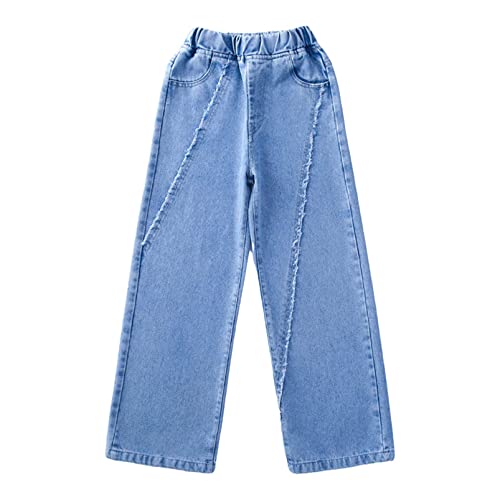 Aislor Kids Girls Casual Loose Jeans Wide Leg Pants Burr Washed Straight Leg Loose Fit Denim Trousers Streetwear 6
