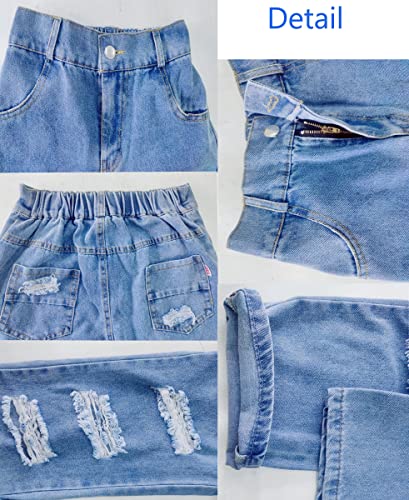 Kids Girls' Casual Wide Leg Baggy Ripped Jeans Cool Loose Fit Distressed Denim Pants Size 5-14 Years 6
