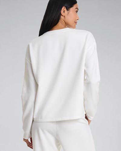 • Pullover Sweatshirt with Boxy Fit: Crew neck sweatshirt sports dropped shoulder seams and ribbed trim on the collar and long-sleeve cuffs. Solid sweatshirt has a boxy cut with a straight hem for an easy fit that flatters