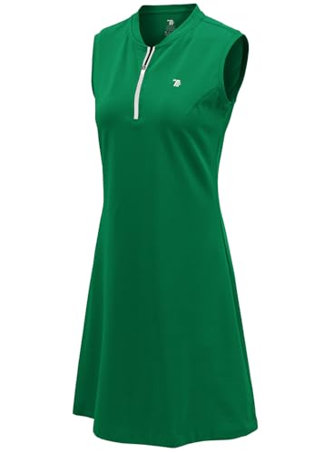 HOT ! BGOWATU Women's Sleeveless Tennis Golf Polo Dress Lightweight Sports Activewear Dress Zip Up