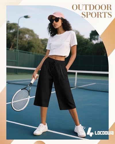 3 Pack Women's Capri Pants, Casual Wide Leg Yoga Pants High Waist Drawstring Cropped Lounge Trousers with Pockets 6