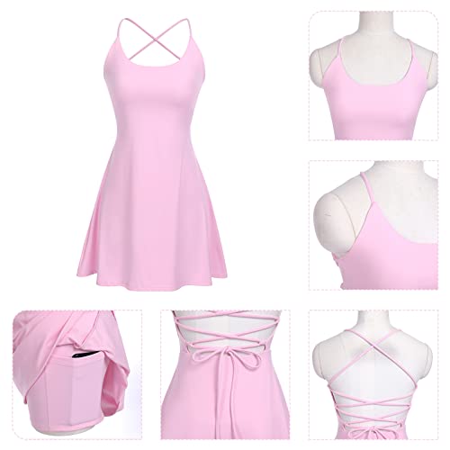 HOT ! Tennis Dress for Women Backless Lace Up Workout Dress with Built-in Bras & Shorts Exercise Athletic Golf Dresses for Women