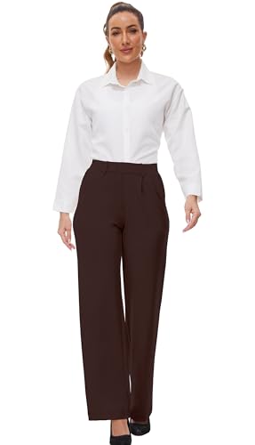 Women’s 22"/27"/29"/31" Wide Leg Pleated Yoga Dress Pants, High Waist Stretchy Slacks for Workout Business Casual 6