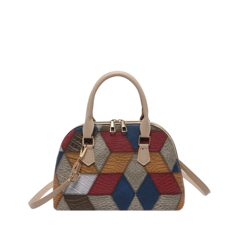 HOT ! Women's Medium Pu Leather Color Block Vintage Style Streetwear Shell Zipper Shoulder Bag Crossbody Bag