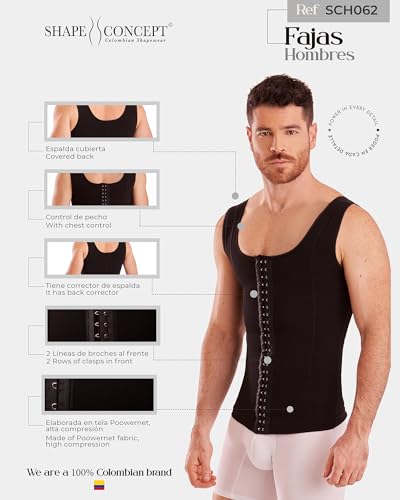 HOT ! SHAPE CONCEPT Fajas para Hombres 362 High Compression Vest with Hooks, Mens Body Shaper Faja para Hombre Shapewear for Men Beige