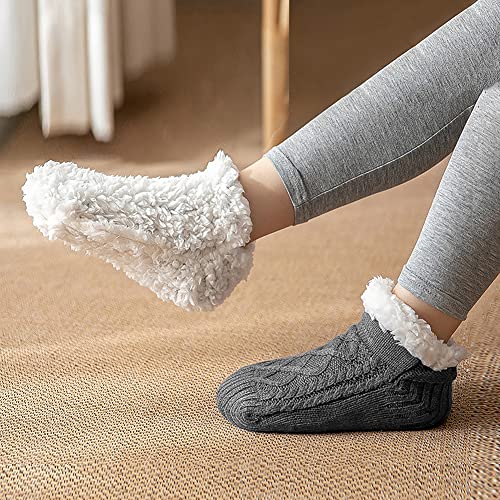 SIQITECHNO Unisex Warm Slipper Socks Grip Slipper Socks Thick Fleece lined Fuzzy Sherpa Ankle Warm Socks for Women Men 4