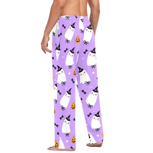 HOT ! Spirits Black Bow Tie Men's Cotton Pajama Pants with Pockets and Drawstring Comfortable and Stylish,S