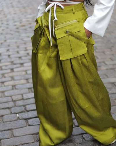 More information about Womens Casual Baggy Cargo Pants with Pockets Straight Wide Leg Satin Trousers Streetwear Sweatpants