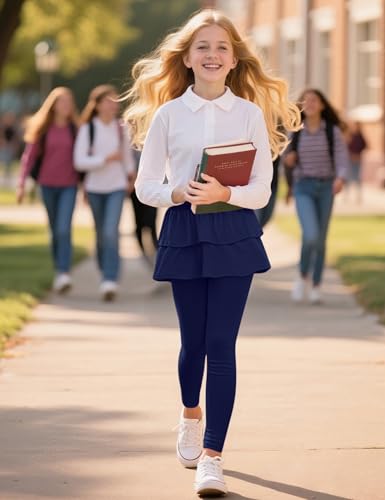 Auranso Girls School Uniform Pants Kids Clothes Ruffle Tutu Leggings with Skirt 2-14 Years 6