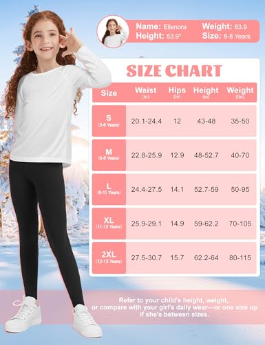 • Fits Just Right as She Grows: From little explorers to growing tweens, our fleece-lined leggings for girls come in 5 sizes - Recommended for girls 5–13 years, approx. height 43–64 inches/weight 35–115 lbs. Kids grow differently, so please use this size info as a guide only. For a perfect fit, refer to your child’s height, weight, or compare with your girl's daily wear—or one size up if she’s between sizes.