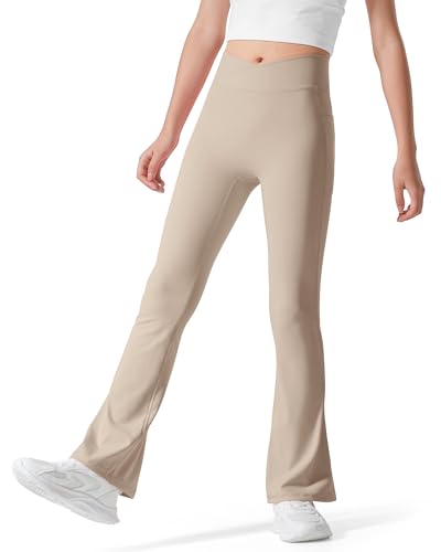 BOOPH Girls Flare Leggings with Pockets Cross-Waist High Waisted Yoga Pants Bell Bottoms Athletic Pants 5