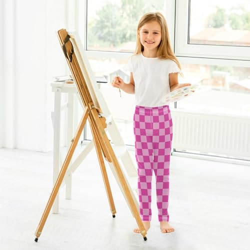Wusikd Pink Checkered Board Girls' Leggings Toddler Doodles Kids Yoga Pants Dance Active Tights 6T 7