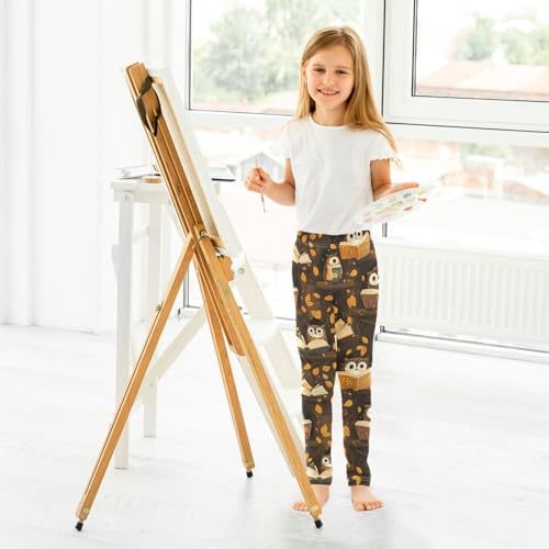 Cartoon Owl Book Print Girls Leggings Soft Stretch Workout Yoga Dance Pants for Kids Casual Tights 1