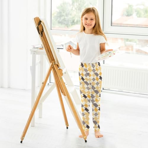 KLL Retro Yellow and Black Houndstooth Toddler Girl Cotton Pants Casual High Waisted Yoga Pants Sports 7