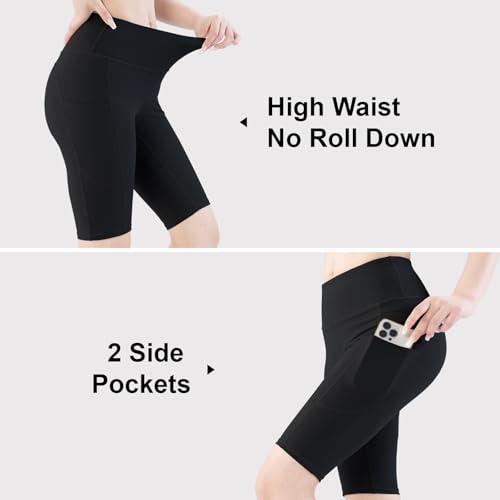2 Pack Biker Shorts for Women with Pockets 8" High Waisted Tummy Control for Workout Athletic Running Shorts 2