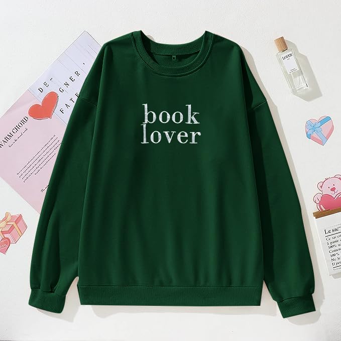 MOUSYA Book Lover Embroidered Sweatshirt Women Funny Reading Book Long Sleeve Shirt Casual Teacher Pullover Tops 4