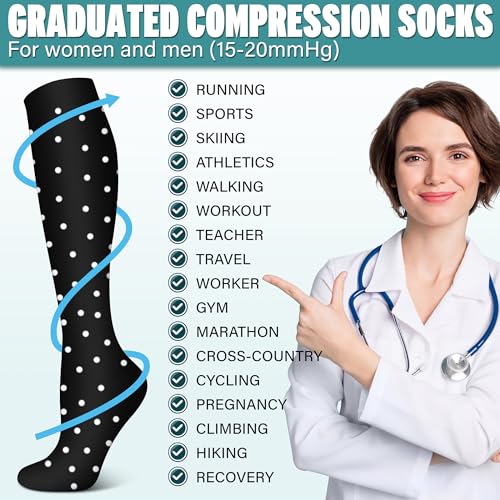• MULTI-PURPOSE - Our Graduated Compression Socks put pressure in just the right spots, work by creating a "pressure gradient"(using graduated compression of 15-20 mmHg) which helps to push oxygen-poor blood out of the feet and legs, and back to the heart. Whether you are fitness enthusiasts, marathon enthusiasts, elderly people with swollen legs, office workers, teachers, crew members, pregnant women, parenting mothers, etc..