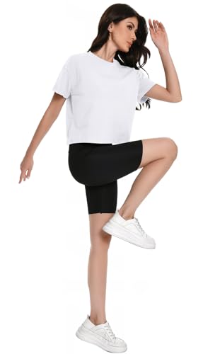 More information about Workout Crop Tops Oversized Tshirts for Women Drop Shoulder Cotton Short Sleeve Tees Boxy Yoga Shirts 2025