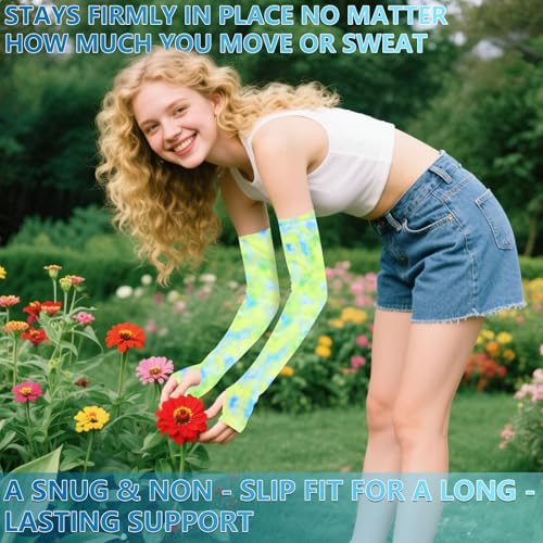 • Cooling Arm Sleeves with Thumb Holes- Stay Cool & Protected:Experience instant cooling relief with our breathable arm sleeves featuring thumb holes for full coverage. Made with ice-feel fabric that keeps you cool in summer heat, perfect for gardening , cycling, running, golf, and outdoor work. Provides UV protection while allowing maximum airflow.