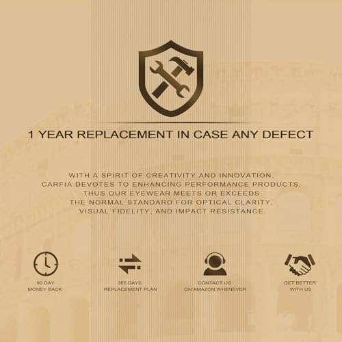 • 【QUALITY GUARANTEE】Each pair of CARFIA eyewear is made through a 300-step process, with meticulous attention to detail at every stage of production, all steps requiring a commitment to quality to ensure that each customer receives the perfect pair of eyewear.