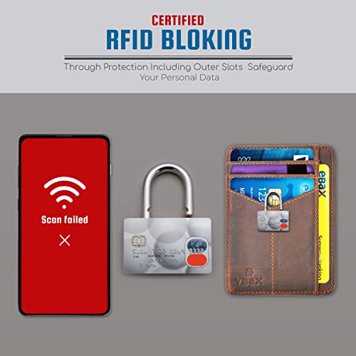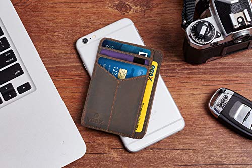 RFID Slim Wallet for Men Women, 8 Card Slot Leather Minimalist Front Pocket Credit Card Holders, Vintage Leather 5