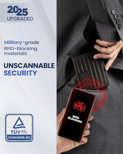 • RFID-BLOCKING - Worried about digital theft? VMAN mens rfid blocking wallet builts with lightweight, military-grade RFID-blocking materials, which creates a Faraday cage effect that protects your cards from fraudsters with scanning devices. Keeping contactless cards, passports, and digital IDs secure from electronic pickpocketing.