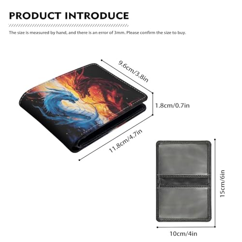 HUIACONG Flame Dragon Wallet for Men Slim Leather Wallets for Boys Thin Travel Wallet Red Blue Dragon Card Holde Smart Bifold Coins Storage Pouch 6