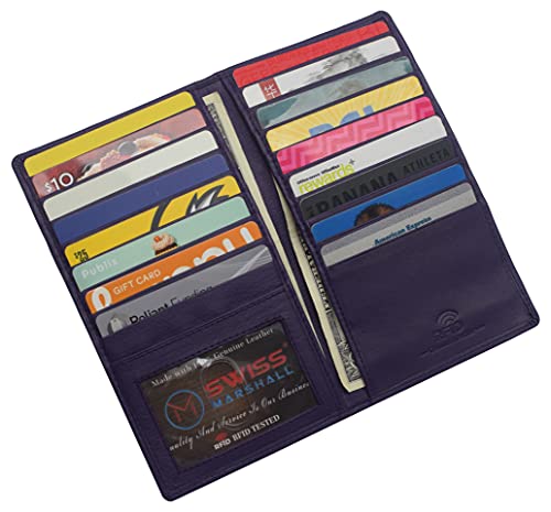 • MORE SLOTS MORE CONVENIENCE: Hold one of our Swiss Marshall wallets in your hands today, open it and discover its many slots and compartments. 20 slots for your credit or debit cards, your shopping cards, or gift shopping cards. 2 large bill compartments that will carry your money safely and 1 ID window. Place your ID or driver’s license