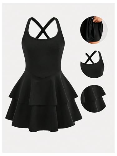 • Features: Tennis dress for girls, sleeveless, layered ruffle hem, crisscross backless, solid color
