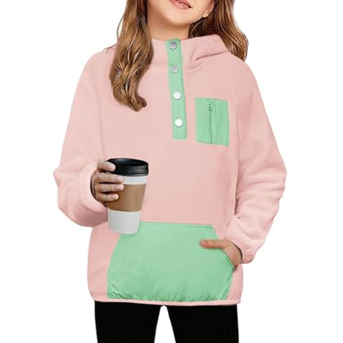 More information about Cute Hoodies For Girls Color Block Sherpa Fleece Hooded Sweatshirt Teen Girl Winter Warm Button Down Pullover Jackets