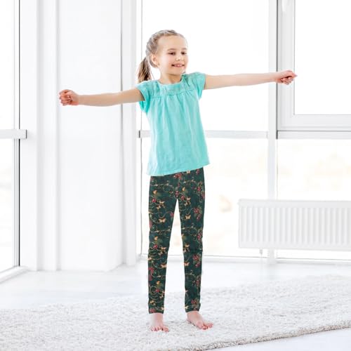 ALAZA Girls' Leggings Children's Yoga Pants Skinny Printed Dance Vine Red Berry Comfortable 4T 6