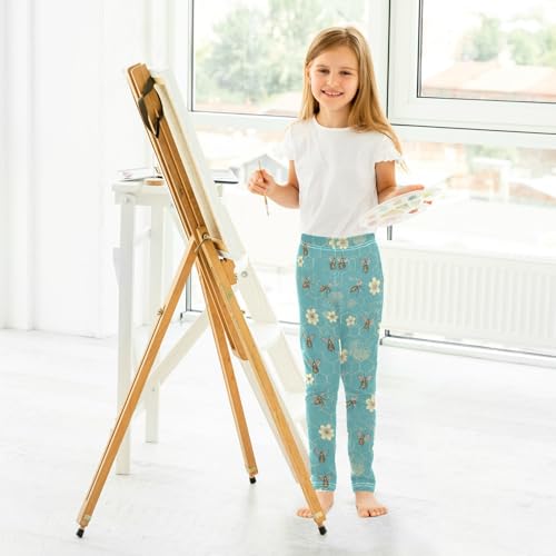 Wusikd Bee Sunflowers Girls' Leggings Toddler Doodles Kids Yoga Pants Dance Active Tights 4T 7
