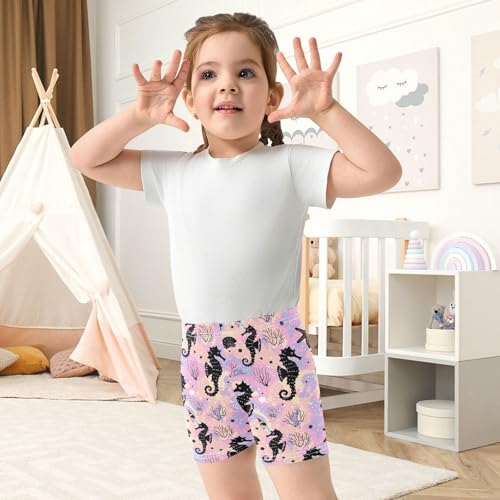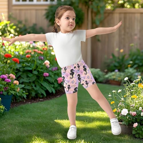 Black Seahorse Print Girls Shorts Elastic Waist Sports Shorts Girls Leggings Pants for 4-10 Years 6