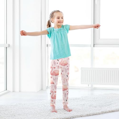 Wusikd Cute Pink Flamingo Girls' Leggings Toddler Doodles Crown Kids Yoga Pants Dance Active Tights 4T 6
