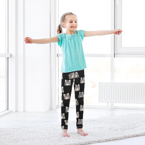 Black Cat White A Girls Leggings Athletic Pants Tights Stretch Bottom 6